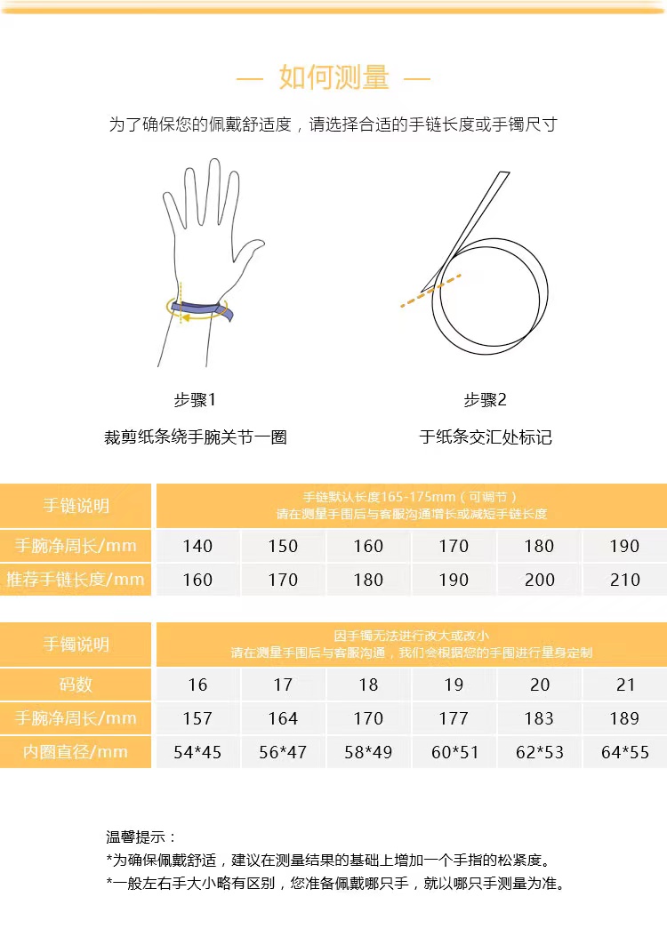 项链默认尺寸16"-18"(40-46cm);手链默认尺寸16.5-17.5cm。