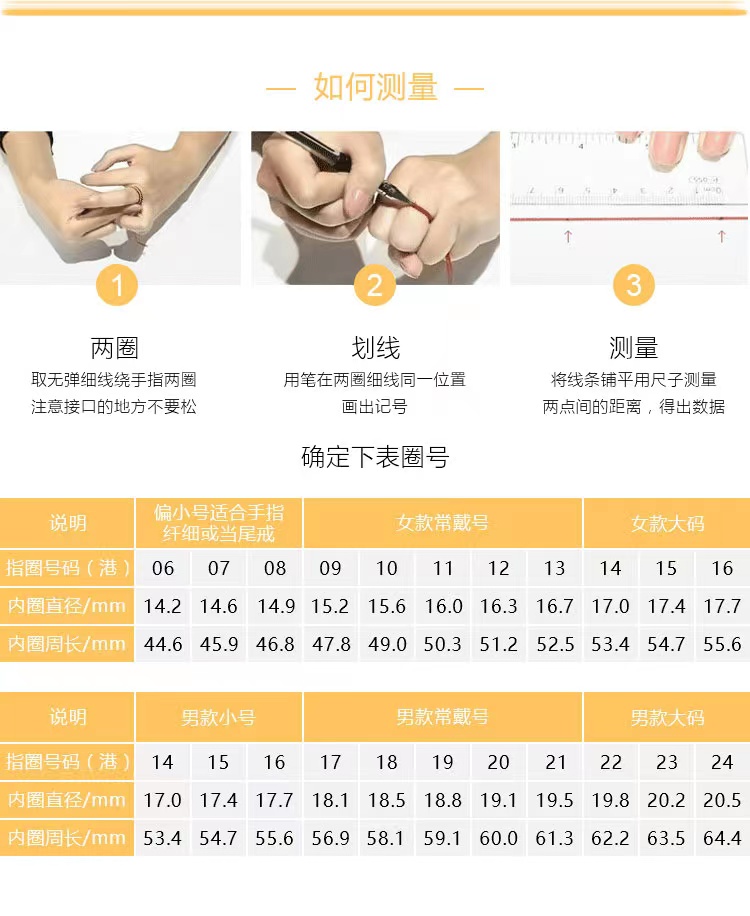 请注意:现货商品单戴款戒指默认港围13号,两用款戒指默认港围14号;